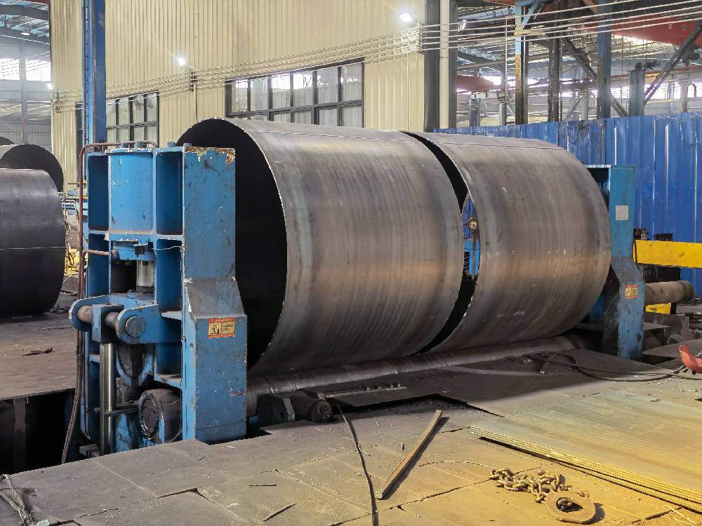 產品說明:螺旋管是以帶鋼卷板為原材料,經常溫擠壓成型,以自動雙絲雙面埋弧焊工藝焊接而成的螺旋縫鋼管。螺旋鋼管將帶鋼送入焊管機組,經多道軋輥滾壓,帶鋼逐漸卷起,形成有開口間隙的圓形管坯,調整擠壓輥的壓下量,使焊縫間隙控制在1~3mm,并使焊口兩端齊平。(1)原材料即帶鋼卷,焊絲,焊劑。在投入前都要經過嚴格的理化檢驗。